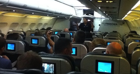 De acuerdo con la cadena 9News, varios pasajeros del vuelo Frontier 719, que se vieron afectados, fueron invitados por el piloto de la aeronave a cenar pizza mientras esperaban.