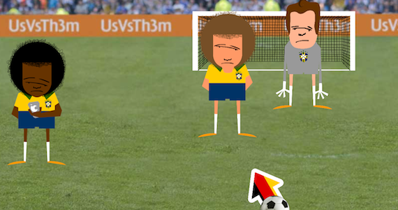 El juego en línea llamado "The realistic Brazil 2014 Game", comienza explicando al usuario que será el delantero alemán André Schürrle. Y el objetivo del juego consiste en vencer a la defensa brasileña compuesta por Dante, quien aparece jugando con su Ipod, David Luiz quien se observa perezoso y al portero Julio César.