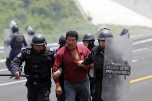 PUEBLA, PUEBLA, 09JULIO2014.- Pobladores de distintas comunidades del municipio de Atlixco, que bloquearon la autopista Puebla-Atlixco en contra del cierre de los registros civiles en todas las juntas auxiliares de la ciudad, sostuvieron un enfrentamiento por más de tres horas con la policía estatal que pretendía reabrir la circulación vehicular. Hasta el momento se reportan cuatro lesionados, dos policías y dos niños además de una decena de policías retenidos por los pobladores.