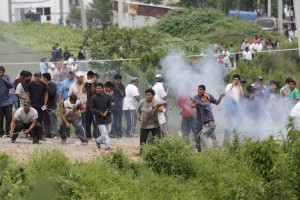 PUEBLA, PUEBLA, 09JULIO2014.- e Atlixco, que bloquearon la autopista Puebla-Atlixco en contra del cierre de los registros civiles en todas las juntas auxiliares de la ciudad, sostuvieron un enfrentamiento por más de tres horas con la policía estatal que pretendía reabrir la circulación vehicular. Hasta el momento se reportan cuatro lesionados, dos policías y dos niños además de una decena de policías retenidos por los pobladores.
