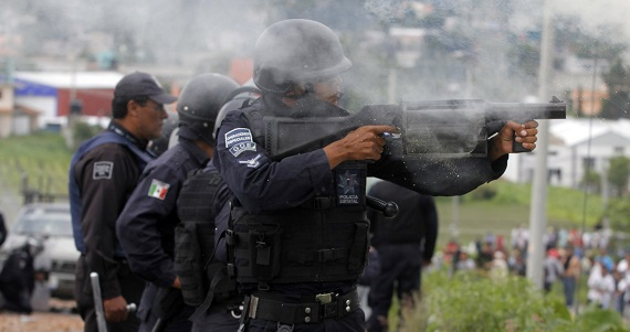 Elementos de la Policía Estatal de Puebla agredieron  manifestantes con balas de goma el pasado 9 de julio. Foto: Notimex