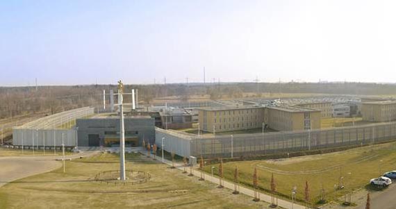 El espacio de la penitenciaría es de 15 hectáreas en el pueblo de Grossbeeren, cercano a Berlín. Los talleres, gimnasios, salas de juegos están concebidos arquitectónicamente para disminuir la vigilancia sobre los presos.