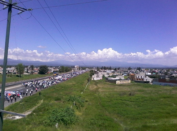 Los cientos que marcharon en un principio, se convirtieron en miles. Algunos denunciaron que se instaló al menos un retén donde se revisaban los carros para ingresar a la capital de Puebla, además de que se retuvo a unos camiones con gente proveniente de la sierra.