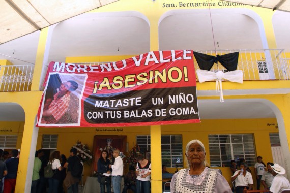 "José Luis Alberto Tehuatlie Tamayo murió el 19 de julio en el hospital general del sur en Puebla luego de haber tenido muerte cerebral por una bala de goma lanzada por la Policía. Puebla, Puebla, 2014".