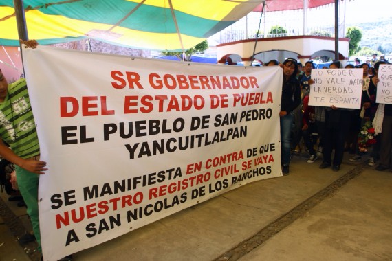 Habitantes de siete poblaciones salieron a manifestarse en distintos puntos de Puebla para exigir el regreso de las oficinas de Registro Civil a las presidencias de las Juntas Auxiliares, pues con la Ley Orgánica Municipal, aprobada el 3 de diciembre del año pasado, se les quitó la facultad de operar el servicio.