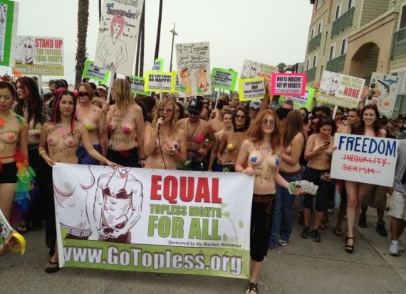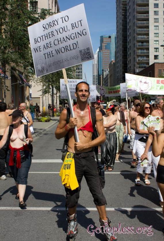 Ayer 24 de agosto fue el "Día de andar Topless", un periodo de 24 horas en el que mujeres (y hombres) son conminados a desnudar la parte superior de sus cuerpos para protestar por hipocresía de las leyes que fuerzan a las mujeres a cubrir su pecho, mientras que a los varones no.