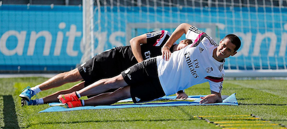 Hernández participó en la práctica matutina bajo las órdenes del técnico italiano Carlo Ancelotti, con la camiseta blanca en la Ciudad Real Madrid.