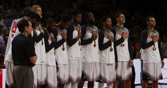 129 - Estados Unidos (35+32+38+24): Irving (26), Curry (10), Harden (23), Faried (12) y Davis (7) -cinco inicial-; Rose, Thompson (12), Cousins (11), DeRozan (10), Gay (11), Drummond (6) y Plumlee (1).