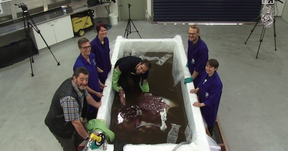 Científicos de Nueva Zelanda, fueron los encargados de descongelar al animal para estudiarlo.