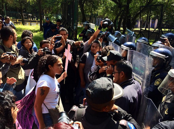 En tanto, otro contingente que también se dirigía a Los Pinos, fue confrontado por un grupo de granaderos en Calzada de Chivatito.