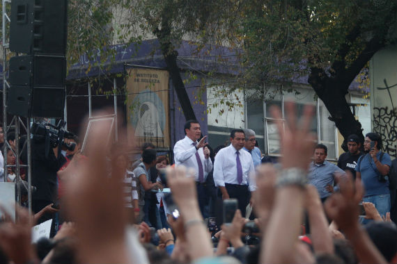 Los estudiantes congregados se negaron y fue entonces que pidieron al Secretario leer ante el micrófono su pliego petitorio. Cuando el funcionario pronunció mal el nombre de la directora del Instituto, algunas burlas alcanzaron el templete, pero los propios alumnos las acallaron. Le habían dicho a Osorio Chong que habría respeto y lo cumplieron.