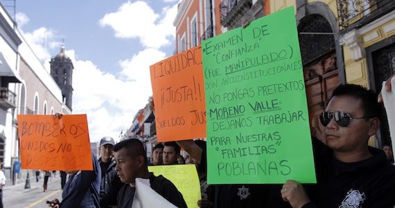 El pasado 2 de octubre, al menos 200 elementos policiacos firmaron por las principales calles de la ciudad de Puebla donde se manifestaron en contra de sus liquidaciones, además de que exigieron la renuncia del Gobernador, pues aseguraron que han sido “sacrificados” tras haber participado en el desalojo de los habitantes de San Bernardino Chalchihuapan bajo órdenes del gobierno estatal.