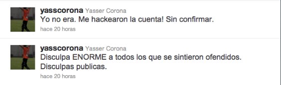 En seguida las críticas comenzaron a llegar y Corona tuvo que disculparse con la comunidad, aunque de nuevo las respuestas contenían un tono irónico. El jugador pidió una disculpa ENORME, sin embargo, siguió escribiendo sobre los regiomontanos, al terminar mencionó que le habían hackeado la cuenta, pero finalizó con un ¿Ya soy el nuevo Ninel?