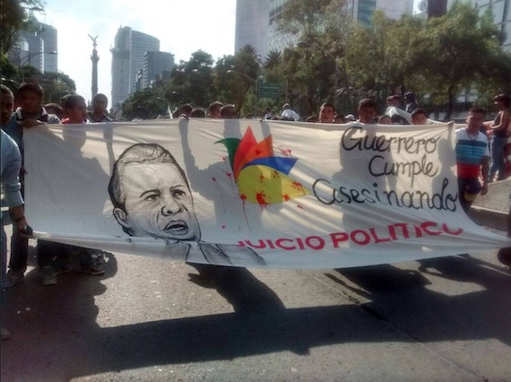 “Ante esta barbarie, el gobierno del estado encabezado por el asesino Ángel Heladio Aguirre Rivero, prefiere cuidar su imagen en los medios de comunicación antes que informar a las madres y padres de familia con puntualidad sobre las investigaciones que se realizan para determinar el paradero de nuestros 43 compañeros”, dice el comunicado.