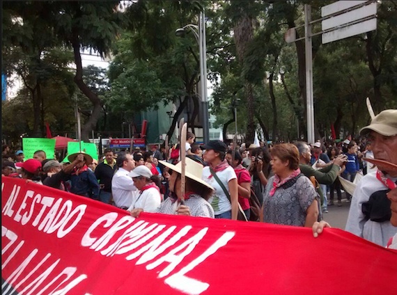 A las 18:00 horas, los primeros contingentes comenzaron a agruparse en la explanada del Zócalo capitalino. Durante todo el recorrido los normalistas no dejaron de gritar consignas: "Gobierno maldito, reprimir es un delito", "Gobierno farsante que matas a estudiantes", "Gobierno ratero que explotas al obrero".