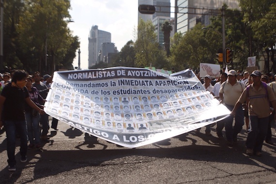 Ciudad de México, 8 de octubre (SinEmbargo).– El asesinato y desaparición de estudiantes normalistas en Iguala, Guerrero, ha congregado esta tarde a miles de personas en El Ángel de la Independencia de la Ciudad de México, y en una columna conformada por universitarios, padres de familia de los jóvenes alumnos de Ayotzinapa, activistas y miembros de organizaciones civiles se disponen a marchar por la Avenida Reforma hacia el Zócalo capitalino.