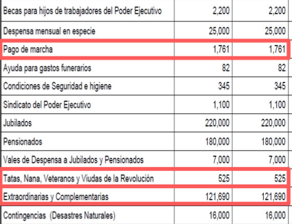 En documentos publicados por el IMCO se puede apreciar que algunas entidades incluyen en sus presupuestos partidas para "pago de marchas", presupuestos para "tatas, nanas, viudas y veteranos de la Revolución".