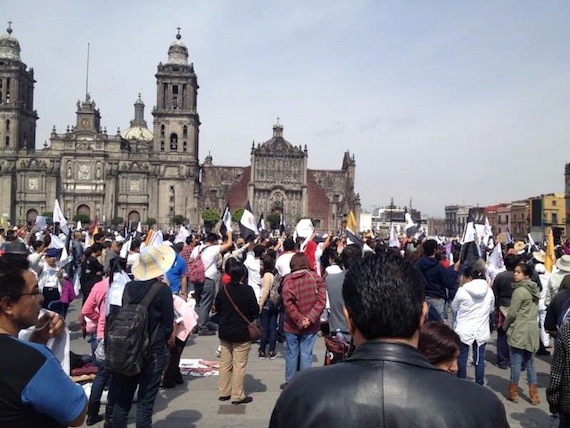Ciudad de México, 9 de noviembre (SinEmbargo).– La sexta movilización civil pacífica para protestar por la desaparición de los 43 normalistas de Ayotzinapa llegó este domingo al Zócalo capitalino. Allí, el movimiento 43X43 llamó a una resistencia civil pacífica en un mitin realizado en la plancha de la plaza pública.
