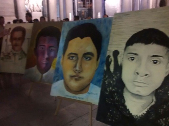 Entre acto y acto -como tres diferentes bailes regionales-, los asistentes gritaban consignas. "¡Porque vivos se los llevaron! ¡Vivos los queremos!", y "¡Ayotzi vive, la lucha sigue!"