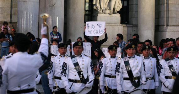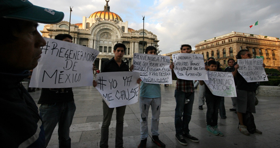 "Somos Ayotzinapa y nos han enseñado a no agachar la cara y a no ser sumisos como siempre nos han hecho los medios de comunicación. Somos buenos para los cuatro ejes, no nada más para la grilla y la revuelta, como dicen los medios de comunicación", agregó el estudiante.