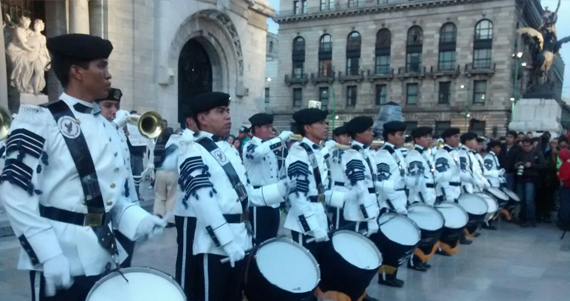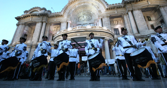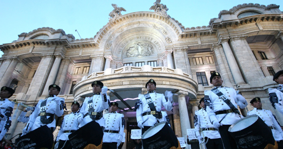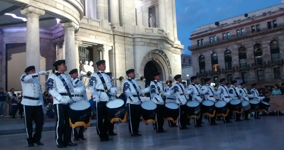 En la Ciudad de México, mientras, unos 75 alumnos de la Normal Rural Raúl Isidro Burgos se trasladaron a la explanada del Palacio de Bellas Artes para una serie de actos culturales. Alrededor de las 18 horas, la banda de guerra de la Normal Rural, denominada Halcones Dorados, inició la presentación con una demostración.