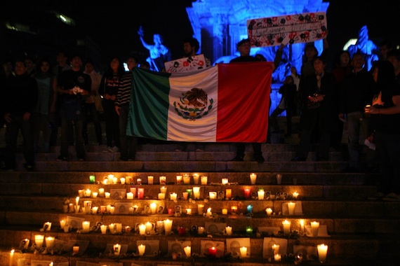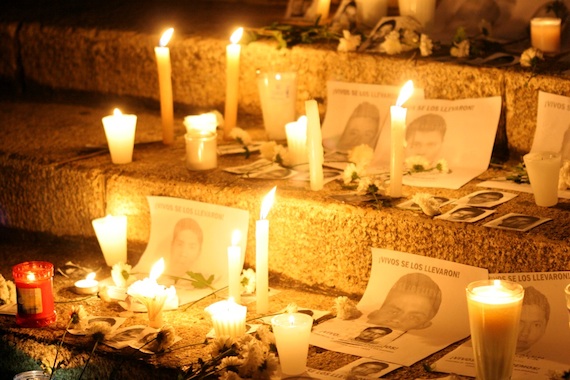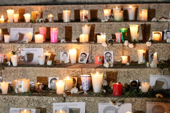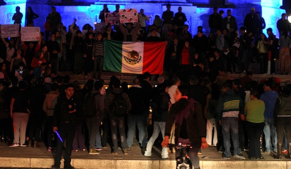 Esta noche cientos de personas se congregaron en el Ángel de la Independencia para exigir la aparición con vida de los 43 normalistas de Ayotzinapa.