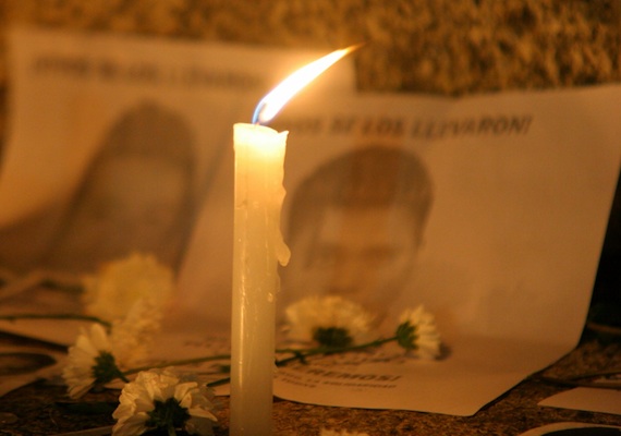 "Hoy el pueblo cantará, con gran coraje y voluntad, esta es la música de un pueblo que reclama libertad", entonaron como protesta sosteniendo cada persona una vela y una fotografía de alguno de los desaparecidos, así como un clavel color blanco.
