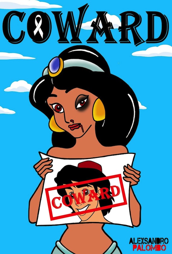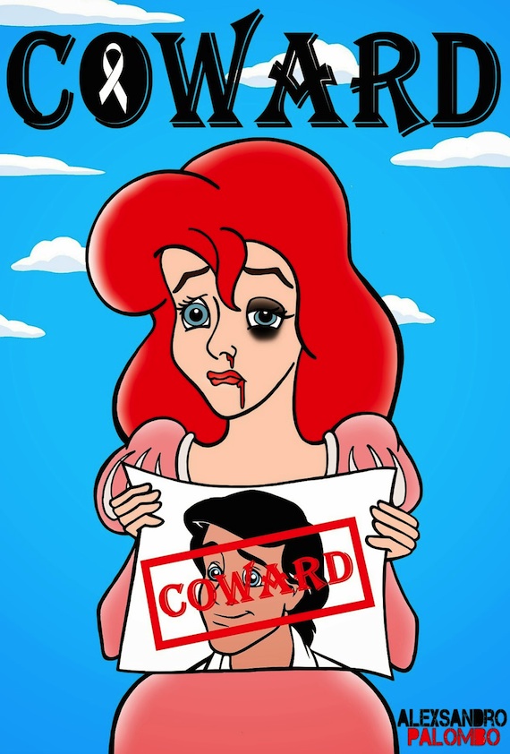 Ciudad de México, 23 de noviembre (SinEmbargo).– En el marco del Día Internacional por la Eliminación de la Violencia contra la Mujer, que se celebrará el 25 de noviembre, el artista italiano Alexsandro Palombo realizó la campaña "Coward" (cobarde), en donde retrata a famosas mujeres de caricaturas con los rostros golpeados por sus novios o esposos.