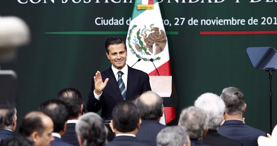 Ciudad de México, 27 de noviembre (SinEmbargo).– El gobierno federal tendrá la facultad para “disolver” un Ayuntamiento cuando existan las pruebas necesarias de que sus autoridades están coludidas con el crimen organizado, anunció el Presidente Enrique Peña Nieto como parte de su nueva estrategia sobre legalidad y justicia que se integra por 10 acciones que van desde la promesa, una vez más de llegar a fondo en el caso de la desaparición de los 43 estudiantes de la Escuela Normal Rural de Ayotzinapa, la integración de un organismo anticorrupción, una Ley de Obras Publicas más transparente y desvincular al salario mínimo de los precios de algunos productos.
