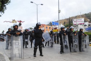 HILPANCINGO, GUERRERO, 14DICIEMBRE2014.- Policías Federales y Profesores de la CETEG, se enfrentaron frente al monumento del General, Nicolás Bravo Rueda