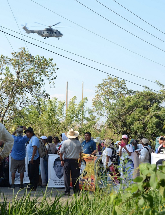Acompañados por Vidulfo Rosales, el representante legal de los padres de los normalistas desaparecidos, los manifestantes intentaron entregar un documento al cuartel para pedir su traslado.