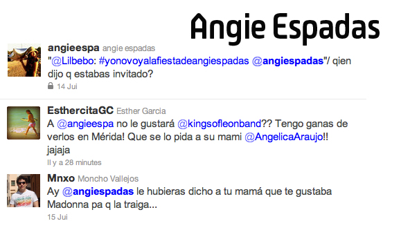 Angie Espadas se daba el lujo de excluir a los invitados de su fiesta via Twitter.