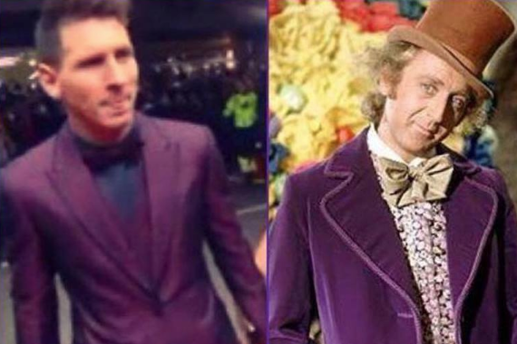 Unos de los "memes" más histriónicos ha sido el combo fotográfico de Leo Messi junto al actor Gene Wilder, que luce una chaqueta de terciopelo en otra gama de morado, u otro bajo el epígrafe, "Messi y la Fábrica de Chocolates", en el que aparece el rostro del jugador enfundado en el traje del protagonista de esa película, Willy Wonka, (Johnny Depp), de color cereza con chistera a juego. EFE