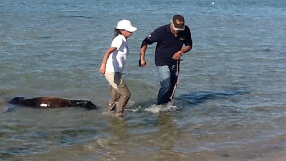 Después de tres horas, concluyó 98 por ciento de la labor, y quedó sólo un trozo de línea o cabo muy corto en la aleta lateral del mamífero lo que no implica riesgo para él.