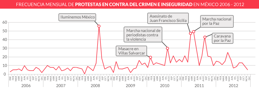 “El caso de Juárez es uno en el que los votantes tuvieron que elegir alcalde en medio de uno de los años de mayor violencia que la ciudad había experimentado. Cinco meses antes de la elección, en enero 31 de 2010, la masacre de 16 civiles puso en shock a la ciudad (…) consistente con la descripción, sólo 30 por ciento del electorado fue a votar (…) Interesantemente, durante este mismo año, las protestas contra la inseguridad se incrementaron marcadamente (de 38 a 78 actos)”, dice.
