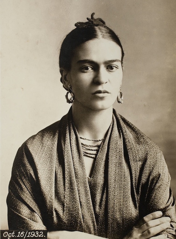 Con una mirada fulminante, Frida Kahlo es captada por el objetivo de la cámara fotográfica de su padres. Ya siendo una joven modelo se presentaba como posteriormente quedaría reflejada en sus autorretratos, con una expresión seria y penetrante.