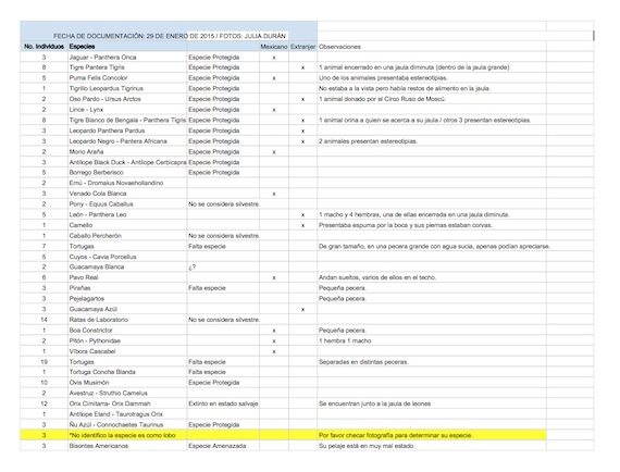 El médico veterinario del lugar explicó que reciben visitas periódicas de la Profepa; el año pasado tuvieron cuatro, afirmó. También expuso que cumplen con las normas de la Secretaría del Medio Ambiente y Recursos Naturales (Semarnat). Carlos Eguibar explicó que cada año se envía un informe anual donde detallan todas las actividades internas.