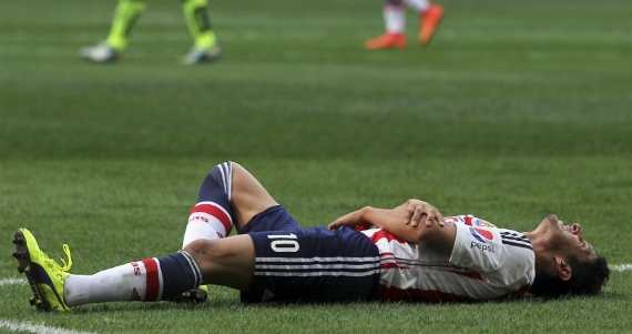 El polémico elemento tuvo una caída descompuesta en el primer tiempo del partido en el que el “Rebaño Sagrado” cayó 0-1 ante Santos Laguna, la noche del viernes dentro de la fecha cinco del certamen.