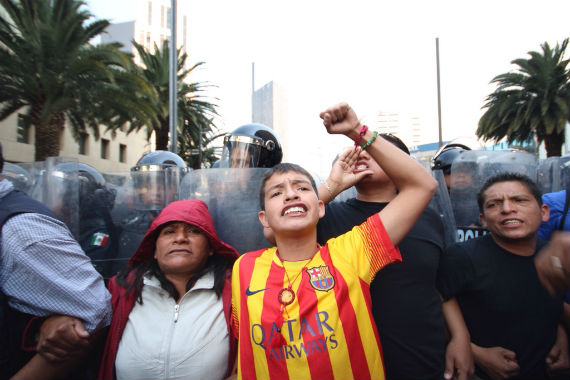 Ciudad de México, 12 de febrero (SinEmbargo).– Pese a que se había contemplado una sola jornada de protestas por 72 horas, este jueves se cumple el cuarto día de plantón en el Monumento a la Revolución, en la Ciudad de México, por parte de la sección 22 de la Coordinadora Nacional de Trabajadores de la Educación (CNTE). Ante la posibilidad que los maestros regresen a las calles, el Gobierno del Distrito Federal (GDF) mantiene un operativo con granaderos para impedir que los docentes bloqueen, una vez más, la Avenida Paseo de la Reforma.