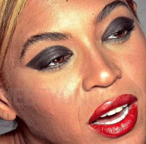 Aunque no en todas las fotografías sin filtro o retoque se veían los defectos de la cantante de Single ladies, en las más difundidas se le ve demacrada, con acné y paño.