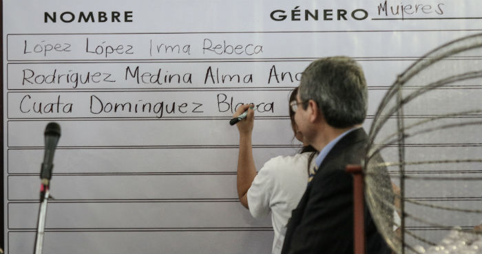 Un hombre y una mujer, luego un externo; un hombre y una mujer, otro externo y así sucesivamente hasta que se llenaron las casillas pintadas en varios pizarrones por cada circunscripción.