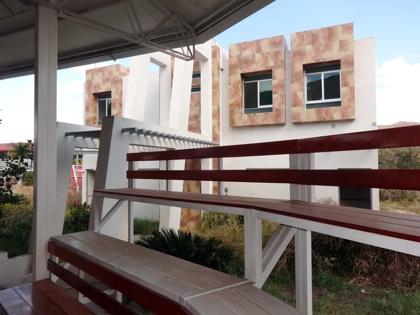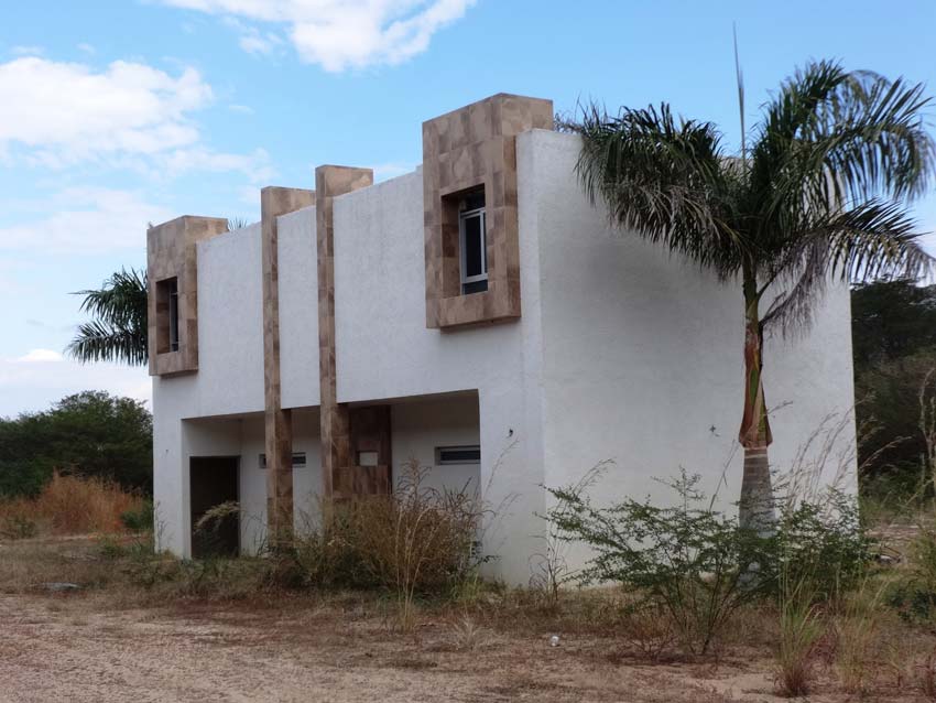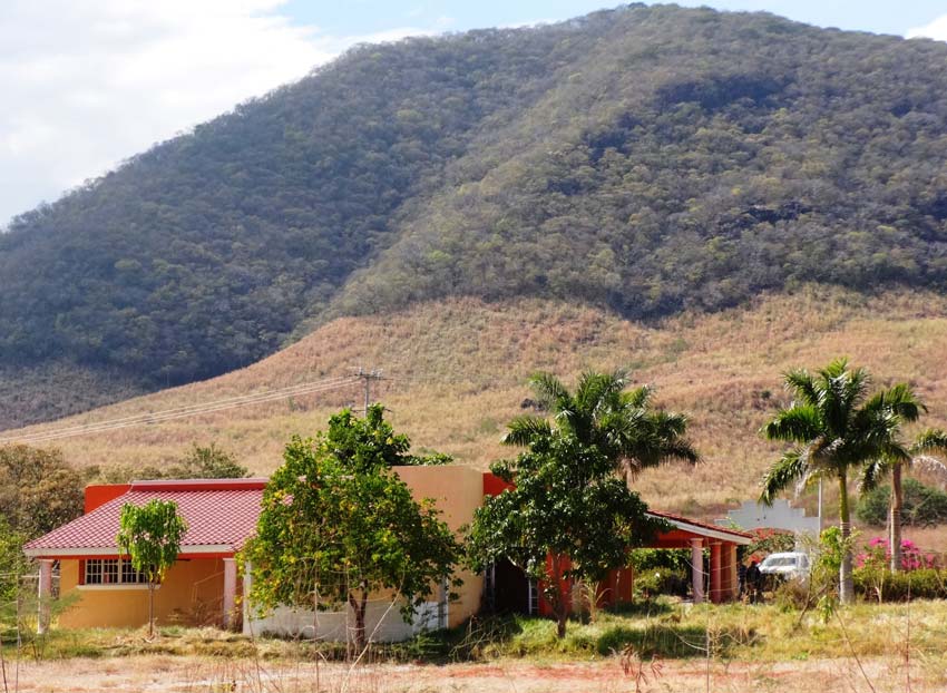 El camino se flanquea por frondosas camelinas púrpuras, rojas, rosas y color melón. Poco después, unos 25 minutos adelante del puesto de vigilancia de los autodefensas, el más viejo de los rurales advierte sobre un conjunto de edificios blancos, un espejismo entre los cerros cafés.