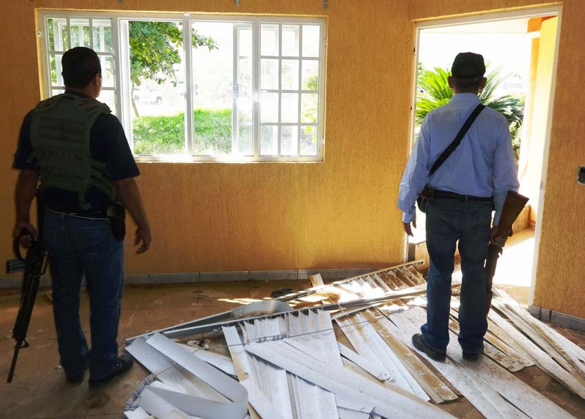 “Aquí ya es peligroso. En todo esto llegaron a emboscar”, dice el mayor de los rurales apenas queda atrás la capilla de Nazario. El hombre gira el dedo índice derecho para contener en el círculo descrito por su dedo las decenas de cerros bajos y cafés, ardientes en el mediodía de diciembre. Va sentado en el asiento del copiloto y lleva el cuerno de chivo entre su sillón y la puerta. Se le ve tan familiar con el arma como a un campesino con su azadón.