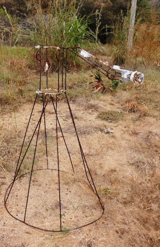 La cerca ahora es vigilada por el armazón de alambre de una figura humana que los autodefensas vistieron luego de tomar La Fortaleza. Le montaban un madero a manera de arma para que el mono funcionara como señuelo de los templarios.