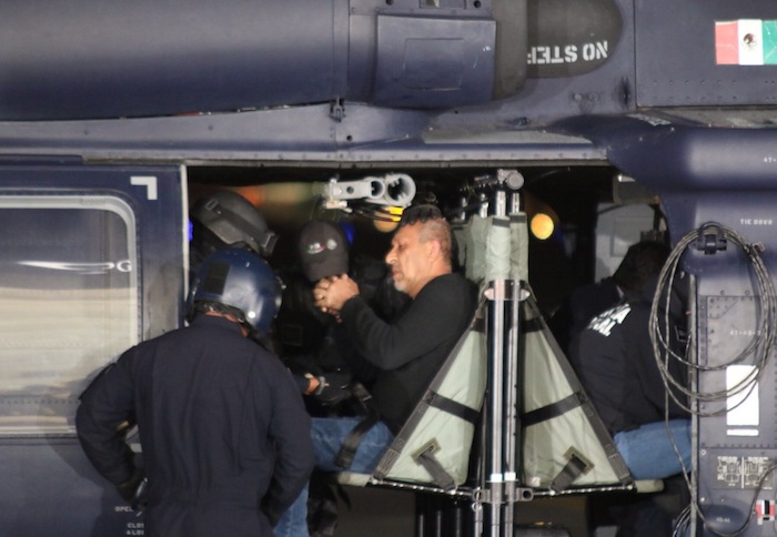 Con el rostro siempre viendo al suelo, fue sujetado por dos policías federales, quienes junto con su hermano, Flavio Gómez, lo subieron a un vehículo de la corporación. Ya en el helicóptero de la Policía Federal, Servando Gómez permaneció con el semblante decaído.