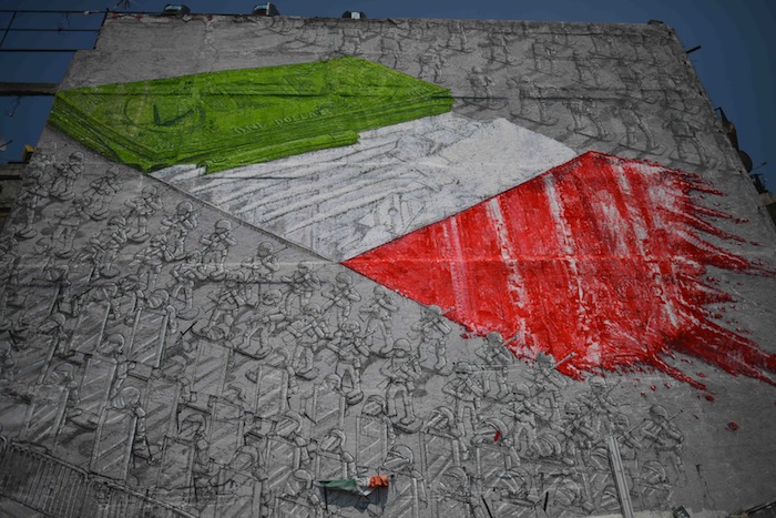- El verde de la bandera de México son dólares, lo banco cocaína y lo rojo la sangre derramada Foto: Cuartoscuro