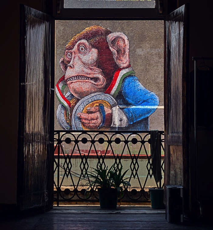 En la esquina de Isabel la Católica esquina con San Jerónimo, se puede observar uno de los murales de Ericailcane, originario de Boloña, quien toma su inspiración visual de ilustraciones de libros de su infancia y cuentos de hadas.
