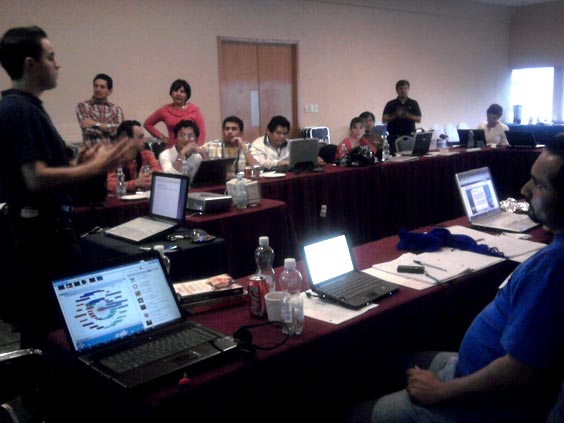 “Todavía hoy el programa de capacitación es uno de nuestros fuertes. Tenemos ya más de 15 años de experiencia, y cada día lo perfeccionamos. Los cursos suelen durar 24 horas, que repartimos en tres días. Ahí, los líderes sociales aprenden desde cómo se enciende una computadora, hasta la forma en que pueden interconectarse… gracias al Internet, ahora es completamente factible detonar procesos de inteligencia colectiva a nivel regional, nacional e internacional, es sólo cuestión de saber cómo hacerlo y es precisamente eso lo que nosotros les enseñamos”.