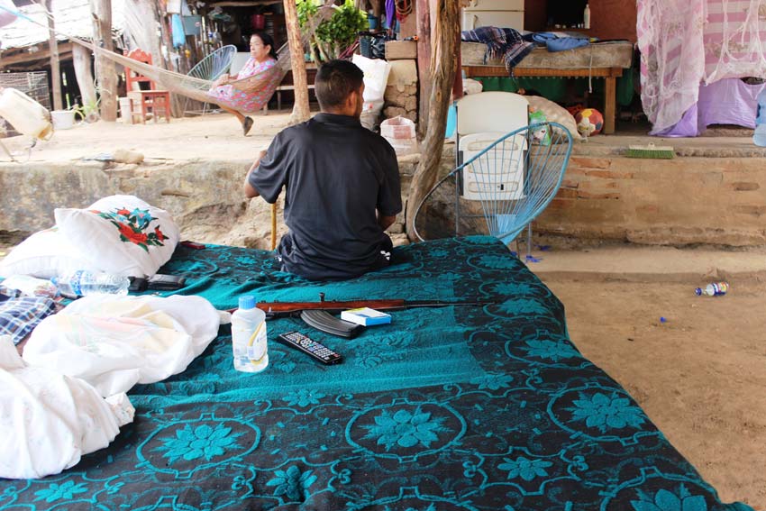 –La verdad, se mete uno con el interés de ver, pues, si agarra uno algo de dinero, pues ya ve cómo está uno de pobre aquí en el rancho. Antes no era nada. Trabajaba en la parcela de mi papá o cortaba limón. Tengo familia… Ese niño morenito que anda por ahí es mi hijo. Tengo otro por allá, con otra señora, y dos más en el otro lado –refiere a Estados Unidos. –Aquí sólo se puede sembrar maíz y ajonjolí. No hay más. Vea lo pobre que es. La otra es irse a cortar limones. Pagan 60 pesos al día.