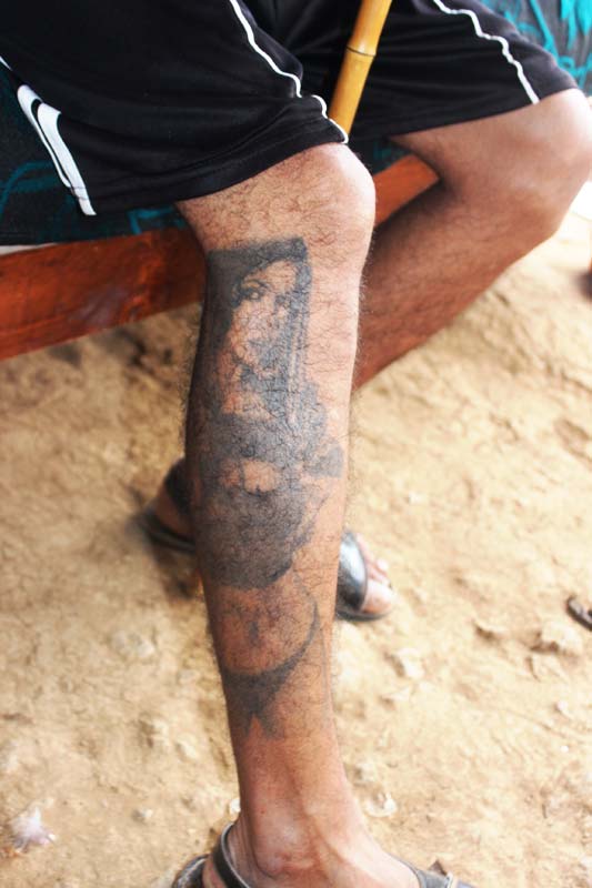 –Sí, pero ya no se puede estar allá. A luego lo mandan a uno de regreso. Allá me hice este tatuaje –muestra una pantorrilla con el rostro de una mujer en actitud sensual. –Ahorita, porque tengo pelos, no se ve bien, pero está bien hechecito.